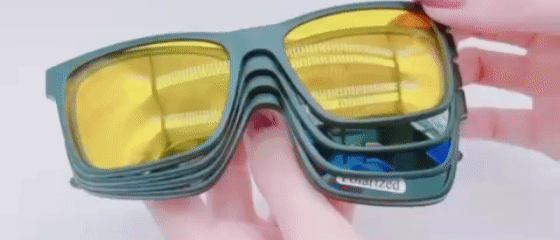 Troque as lentes em segundos: Escuro, Noturno, Espelhado, Transparente e Lentes de Grau. Diga adeus a múltiplos óculos! O sistema magnético do Óculos 5 em 1 permite alternar instantaneamente entre diferentes estilos e funções. Da lente transparente para uso interno, com seu grau ao clipe solar polarizado para o dia ensolarado, este conjunto oferece uma solução completa para todas as suas necessidades visuais, adaptando-se a qualquer situação.